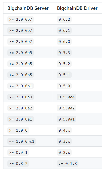 pip install -U bigchaindb-driver==版本号