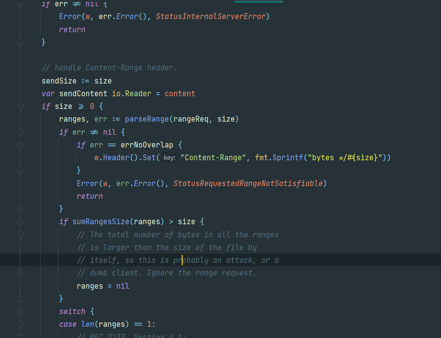 这里是比较重要的地方,根据range的存在与否和range的长度等,来进行不同的操作。总之原理还是遵照规范来的,感兴趣的小伙伴可以去细品一下源码。