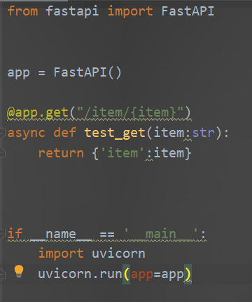 from fastapi import FastAPI这是一个python类,提供了API的所有功能app=FastAPI()将该类实例化@app.get('/')定义路径操作装饰器,告诉FastAPI是正下方的功能负责处理该请求,可用的其他方式:@app:get() @app.post() @app:put() @app:delete() @app.options() @app:head() @app:patch() @app:trace()async def root():定义路径操作功能,带有async功能的函数return {"message": "Hello World"{返回内容,默认是一个json格式,还可以返回dict、list、str、int等类型,还可以返回Pydantic模型