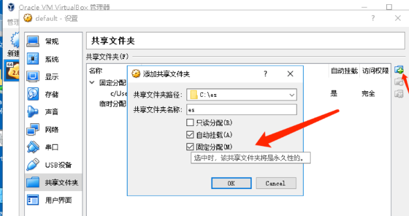 这里需要注意一点,就是在Win10宿主机里需要单独设置一下共享文件夹,这里我设置的共享文件夹叫做es,如果是Centos或者Mac os就直接写真实物理路径即可。