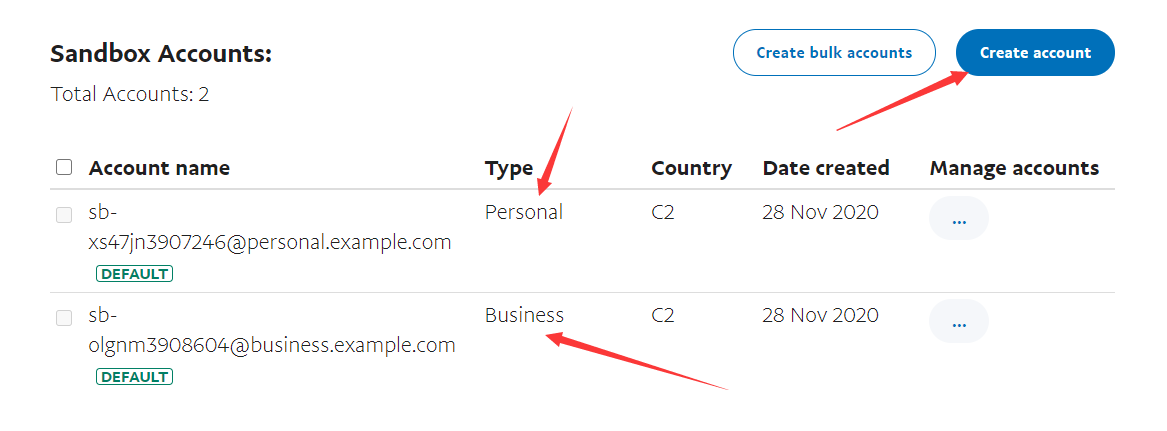 注册成功后,会默认创建两个账号,一个是个人的,一个商户的,如果不想用默认的,可以自己创建