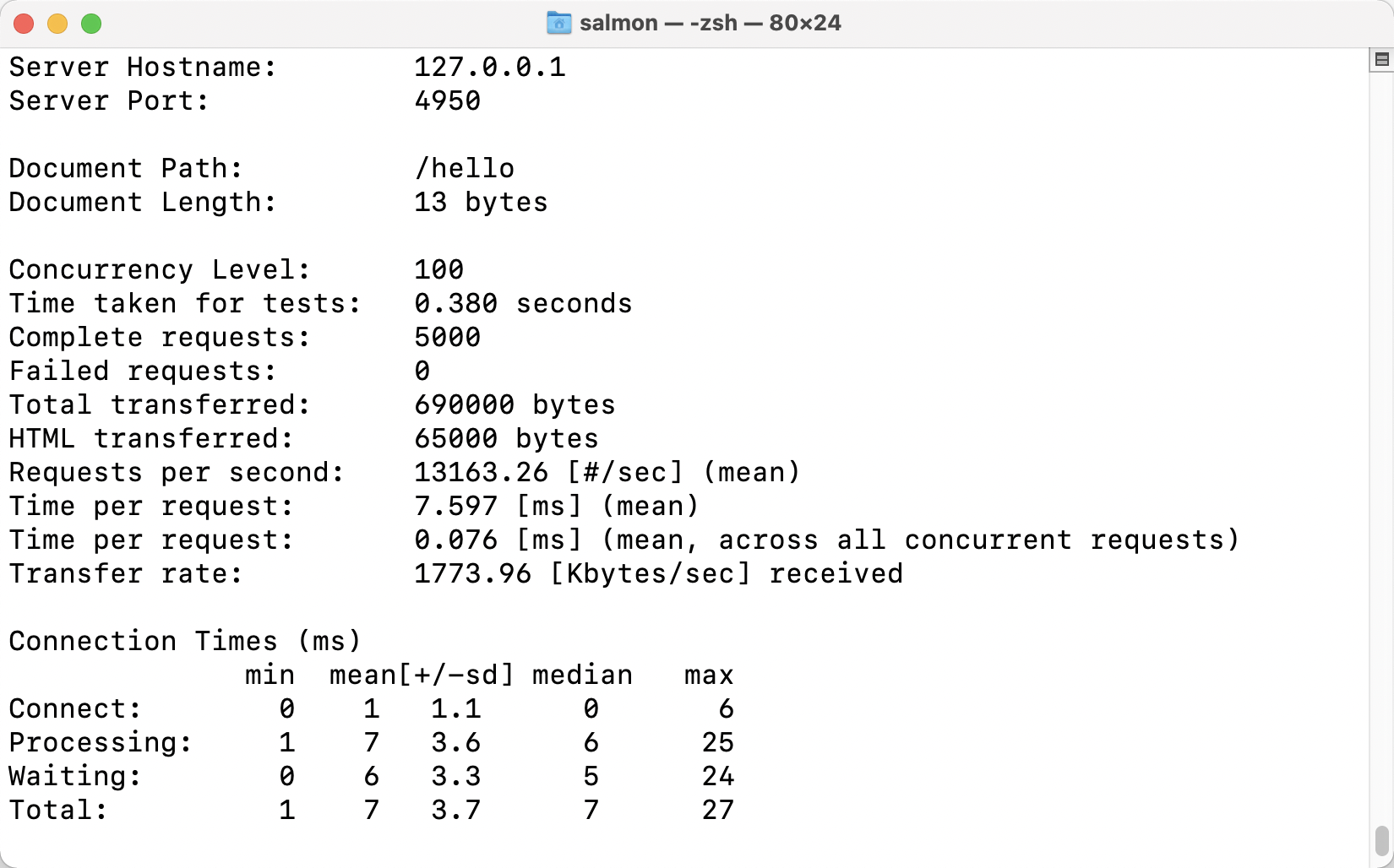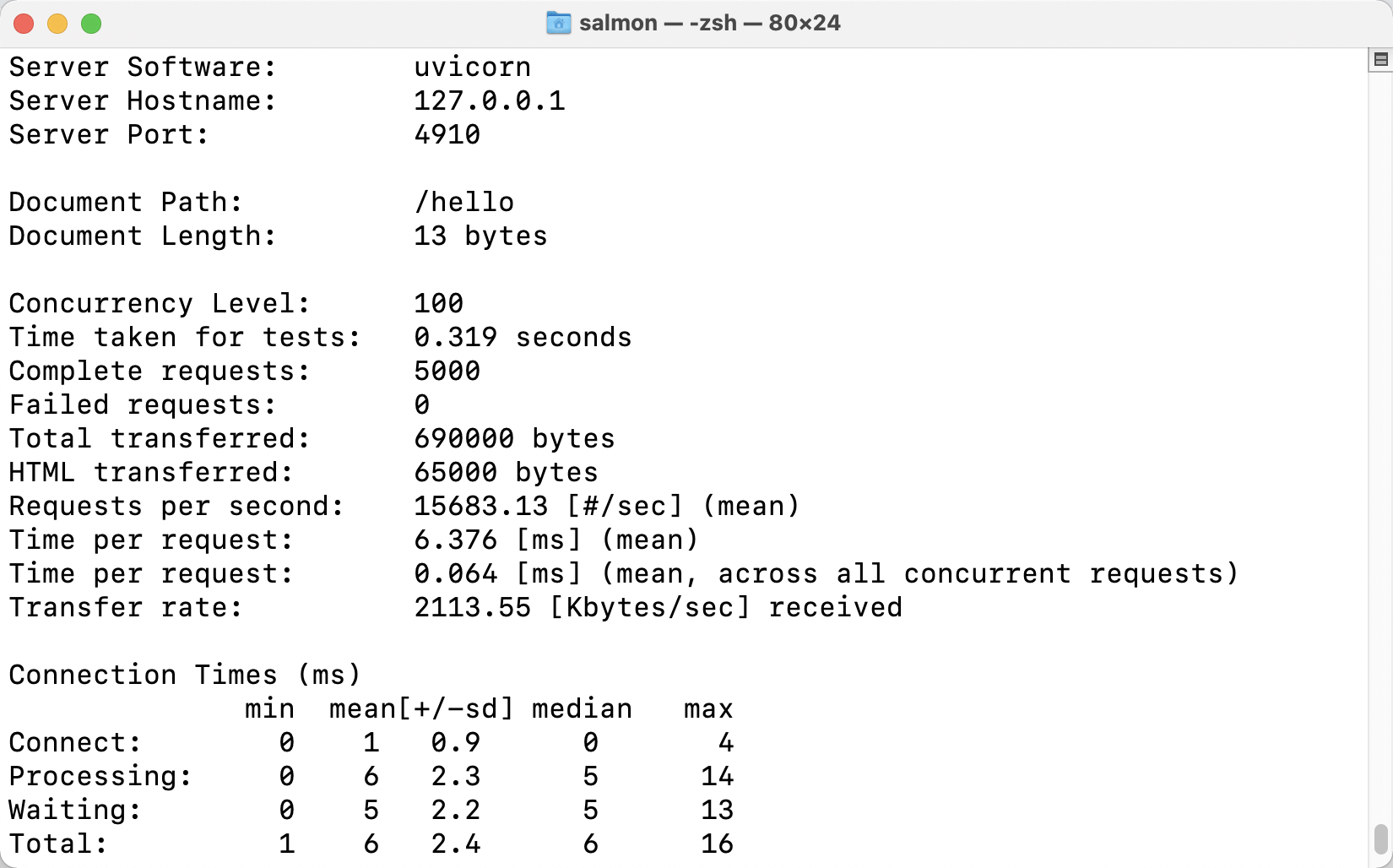 ab -n 5000 -c 100 http://127.0.0.1:4950/hello