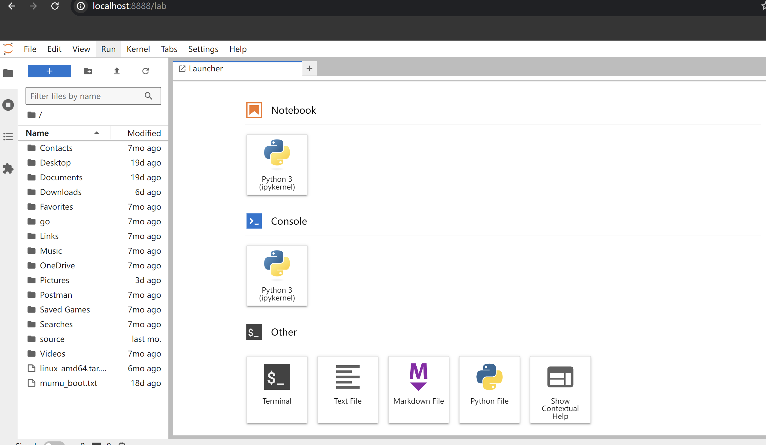 按照官网操作,安装成功后,使用jupyer lab启动服务。默认会在8888端口打开。输入http://localhost:8888就可以进入到这个环境中,看起来像是这样: