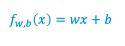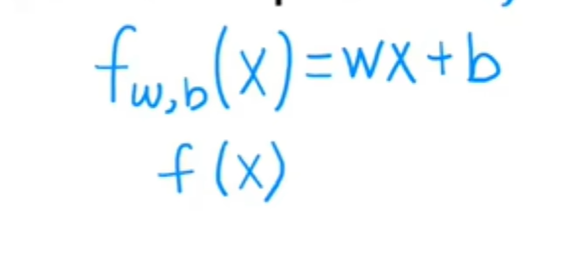 你要用来拟合这个训练集的模型是这个线性函数f_w, x of b 等于w * x+b: