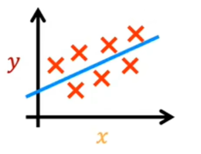 让我们在图标上绘制训练集,其中输入特征x在水平轴上,输出目标y在垂直轴上。请记住,该算法从这些数据中学习并生成最合适的线,就像这里的这条线一样。